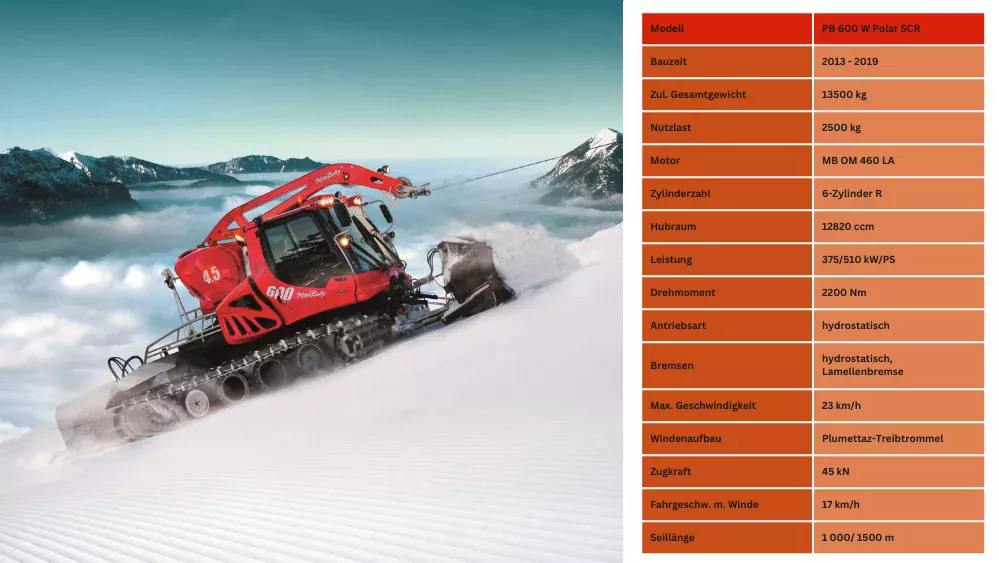 You receive a completely repaired and optically refurbished PistenBully with a 12-month warranty or for the first 1,000 operating hours. For the PistenBully 300 Polar, this warranty even extends to 24 months or the first 2,000 operating hours. Services in the event of a warranty claim: Delivery of spare parts or repair of defective parts that were replaced or repaired during the premium repair. Assumption of the costs for removal and installation as well as travel expenses (only within the first 12 months or 500 operating hours).